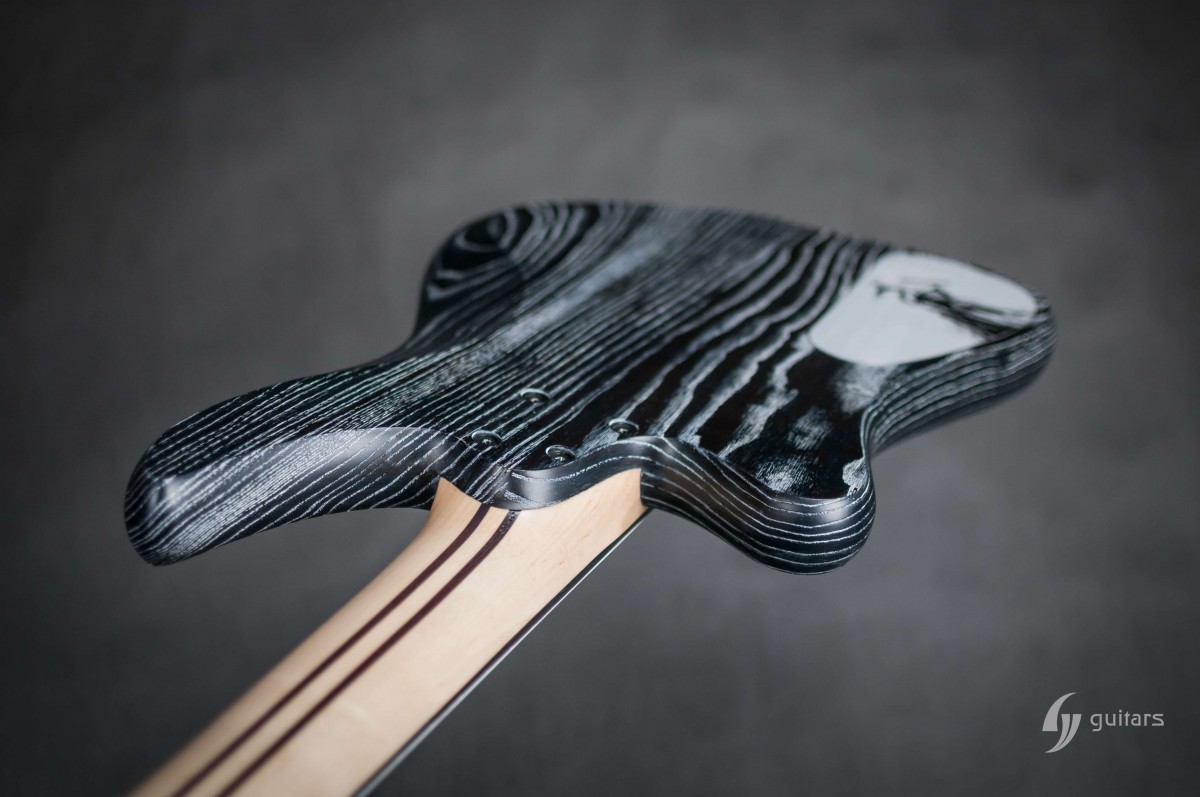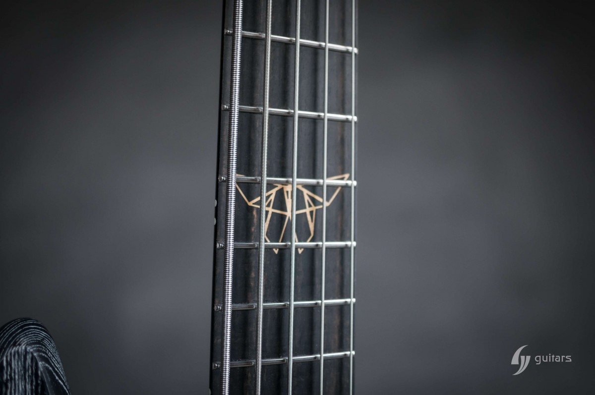 Melkor is the first model of our Jules family. As its name implies it’s been carved for perfection; for dark and deep basses in Drop G tuning. To achieve this incredible sound, we armed it with Nordstrand Neo Pickups, and the one on the neck neck can be switched between parallel and serial wiring. The extra “oomph” is given by the DarkGlass Tone Capsule, but for more sophisticated procedures it can be turned off with the active/passive switch. As its predecessor, this Melkor also has the Silmarils (colored dot inlays), and it’s also embedded with the power of the Moth (inlay @12th), as this beauty will appear in Fragda and The Moth project.