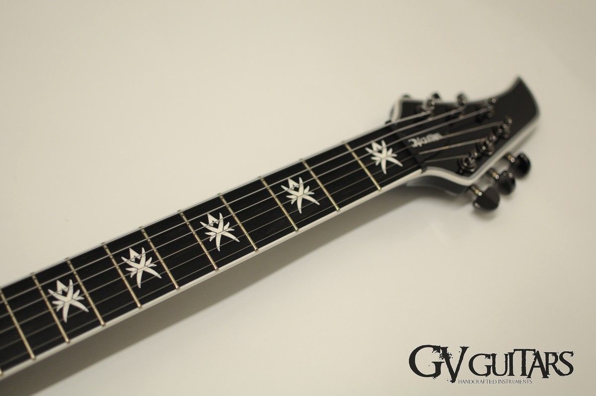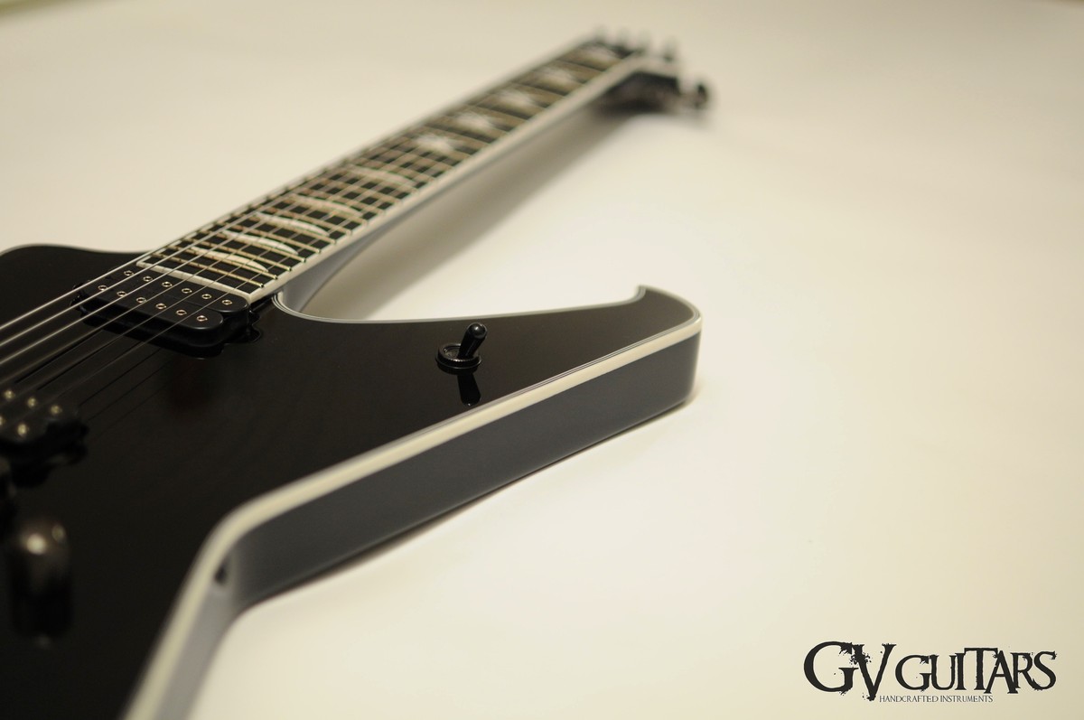 This guitar was made based on a special request by Kovács Gábor of Wisdom. The tune-o-matic bridge, DiMarzio D-activator pickups and the full mahogany skelet with ebony gives this guitar a true heavy metal sound.