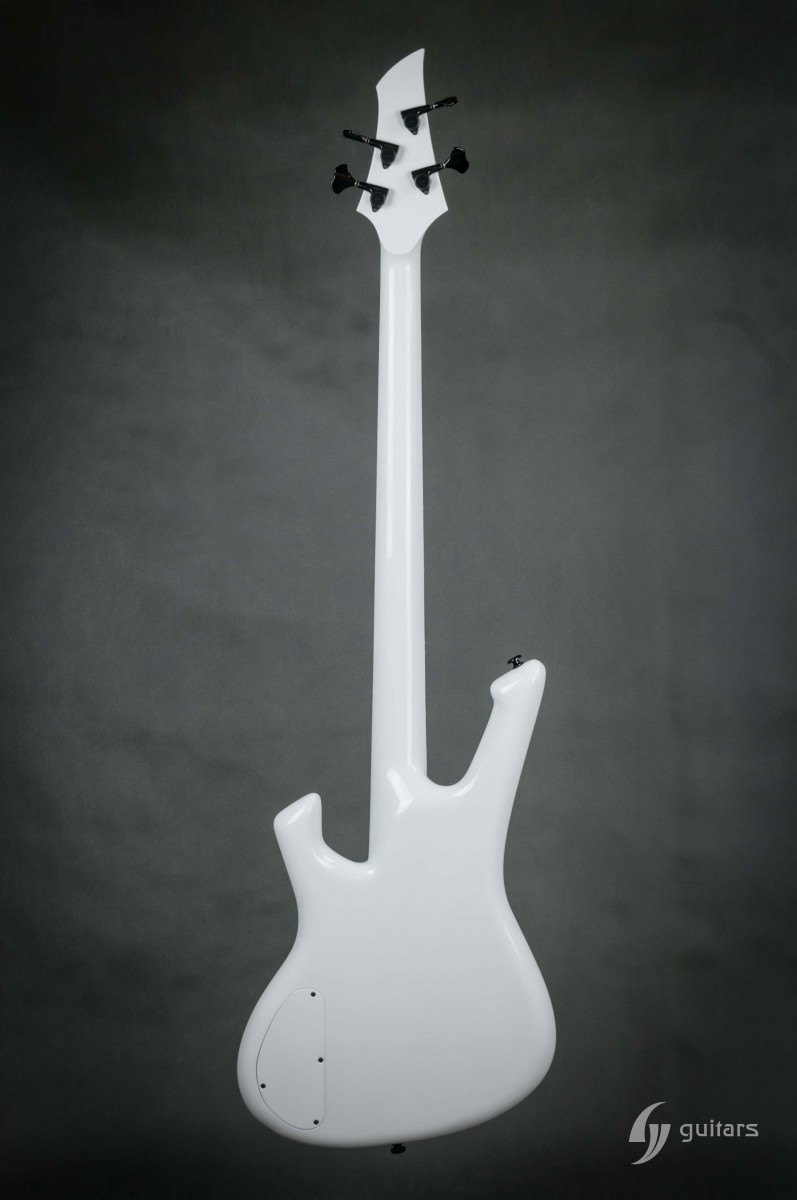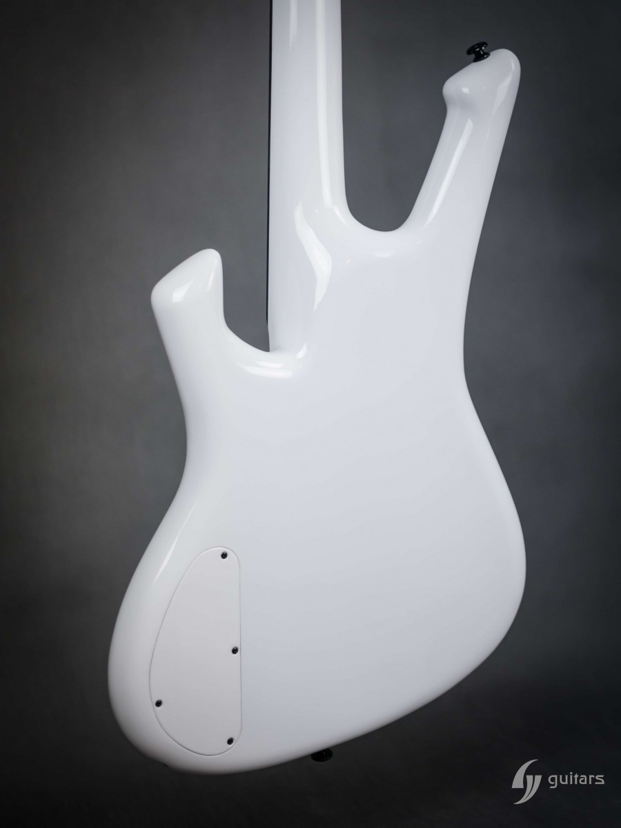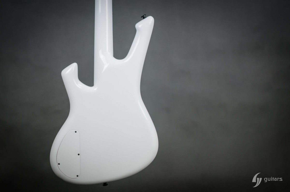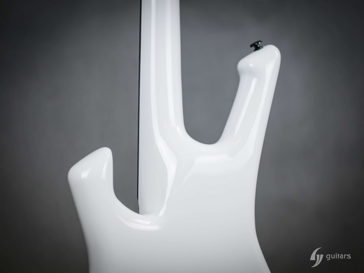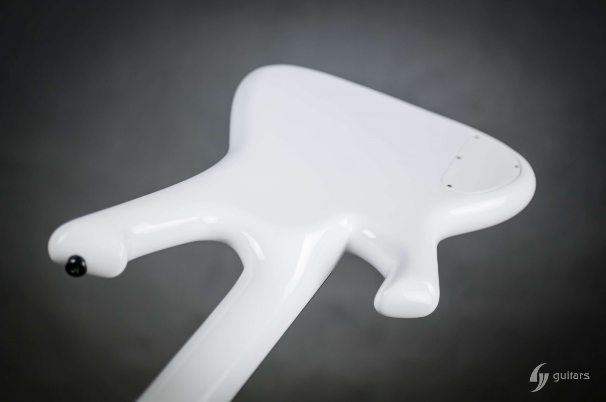 NeoFang BIB is beautiful 4 string bass which was made for Máté Molnár of Beast in Black. Máté wanted bass that was easy to control, yet versatile enough if needed. This instrument has everything it can possibly need: balance, Zolkow preamps 2band EQ, and frequency switches (hidden inside). The EMG DC pickups give the bass its well-known, reliable sound. The only thing that’s on the body is the master volume, so you don’t need to worry that the sound will accidentally change onstage. Máté wanted to make a tribute to his two sons, so we decided to make these nice maple inlays with the two little devils. The bass has a white glossy color and a new redesigned 2+2 headstock. This beauty debuted in the music video From Hell With Love.