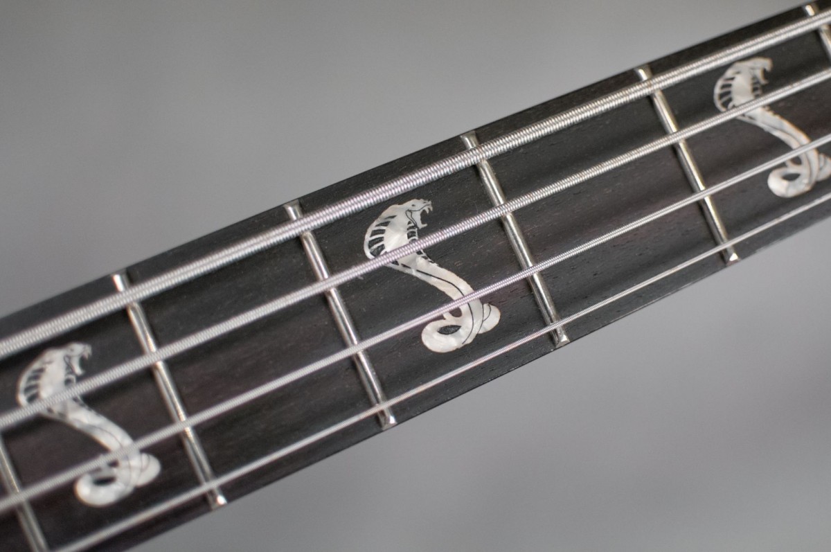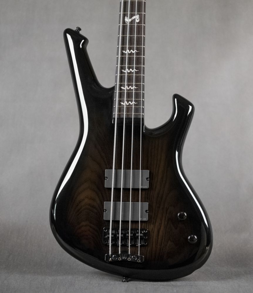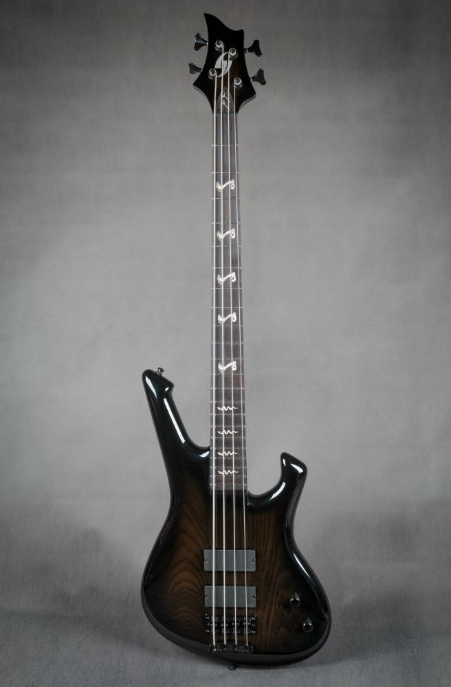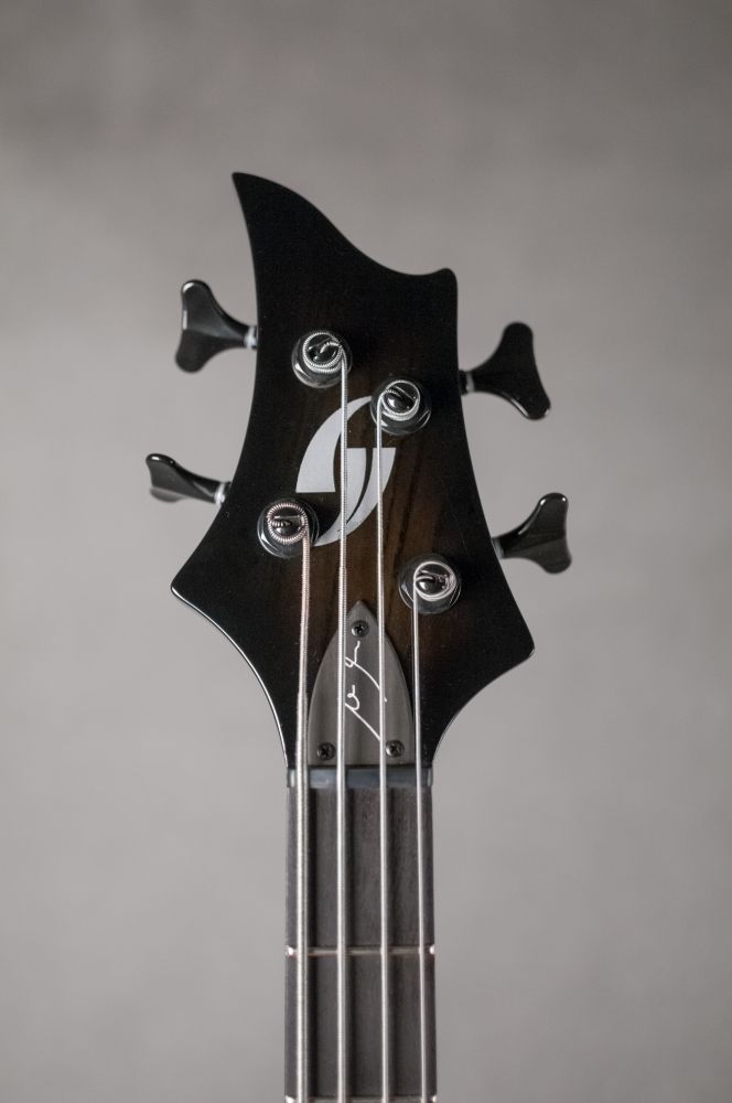 This bass was made based on the Requirements of Máté Molnár of Beast in Black and Wisdom. Máté is very aware on his sound, therefore he uses a 2 band Zolkow preamps EQ already tuned, under the hood. The external controls are only for volume and for blending between the 2 EMG DC humbuckers.