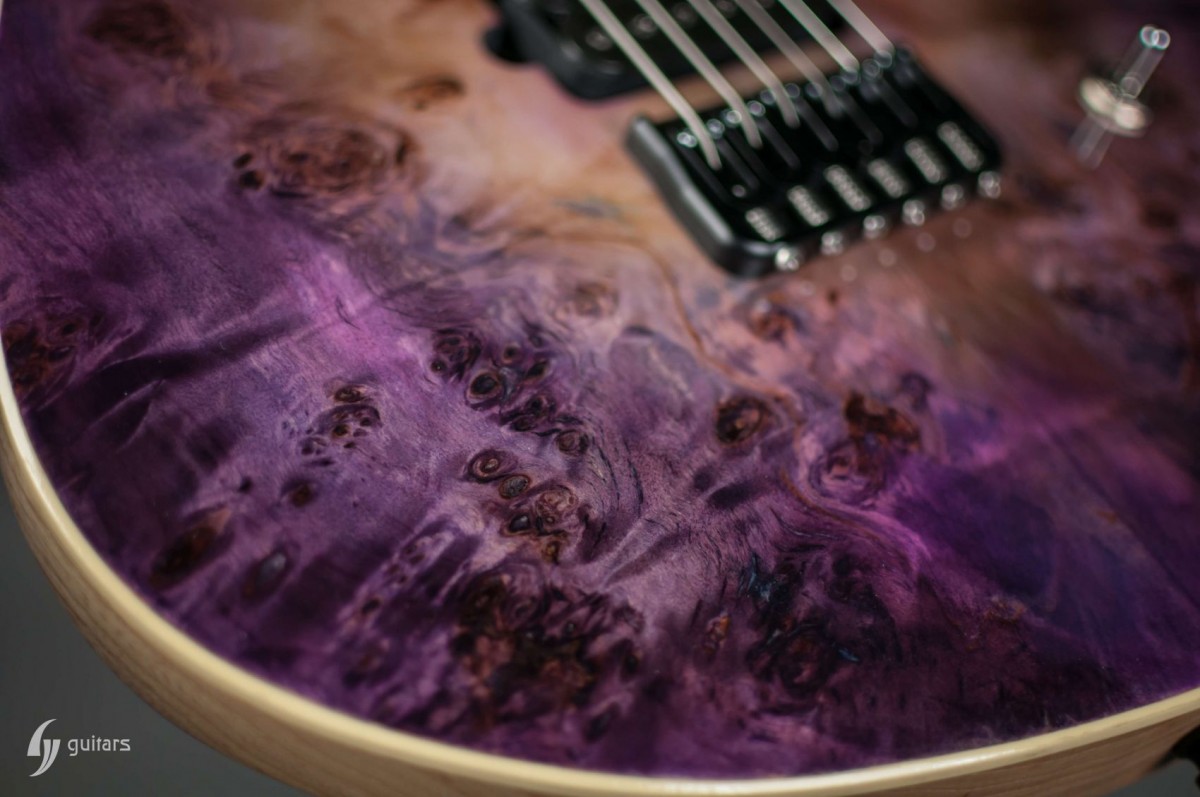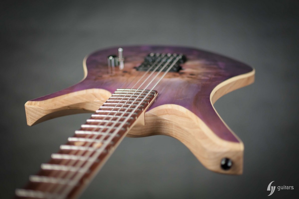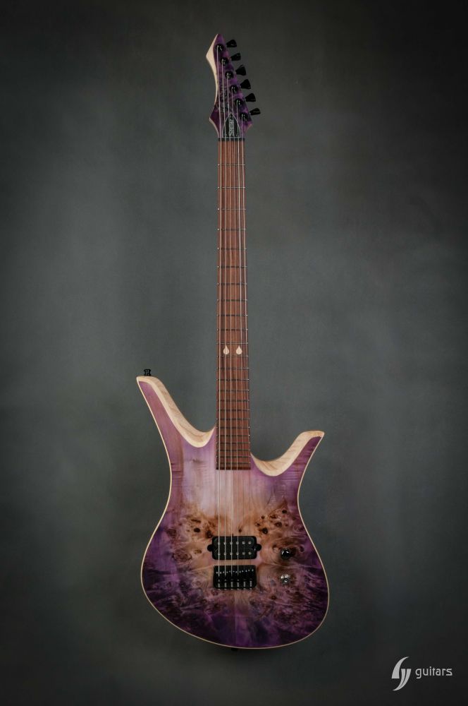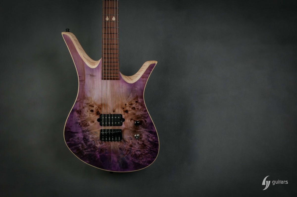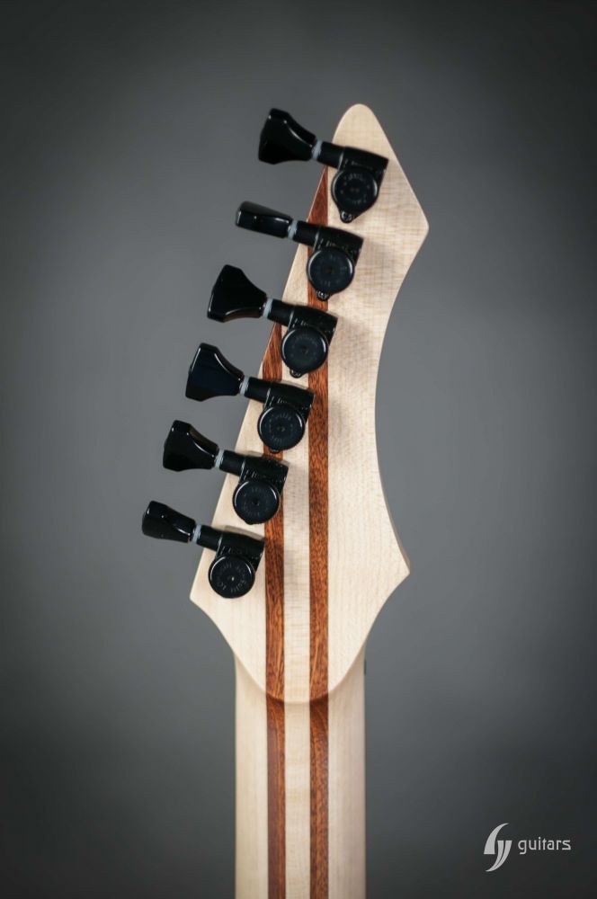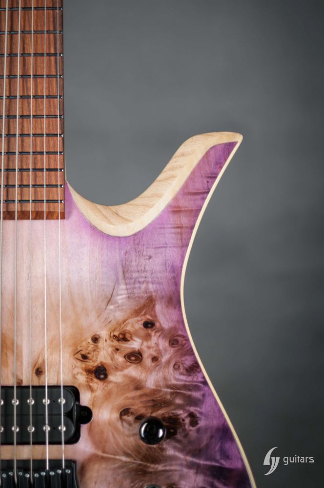 This model was made for Márton Győrög of Phoenix RT. Márton wanted a true axe for his down-tuned songs. The long scale, one pickup config already reveals it won’t be a guitar for soft tunes. If you’re interested in a more standard version of our stellar, check out Márton’s Aquamarine Stellar, which is almost the exact opposite of Amethyst.